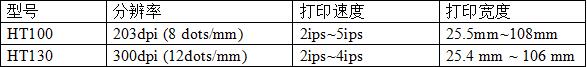 這款桌面級條碼打印機在打印分辨率、最大打印速度、最大打印寬度有略微的差異。HT100打印分辨率為203dpi (8 dots/mm),打印速度2ips~5ips,打印寬度為25.5mm~108mm;HT130打印分辨率為300dpi (12dots/mm),打印速度2ips~4ips,打印寬度為25.4 mm ~ 106 mm。