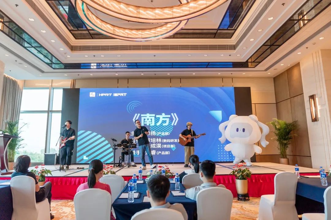 在中場休息階段,漢印工作人員為各位嘉賓貼心的準(zhǔn)備了茶點(diǎn),在茶歇時(shí)間段,由產(chǎn)品總監(jiān)帶頭組成的漢印南十二路樂隊(duì)攜手漢印IP小昇昇為大家?guī)碛鋹倓勇牭母杪暫臀璧浮?/p>